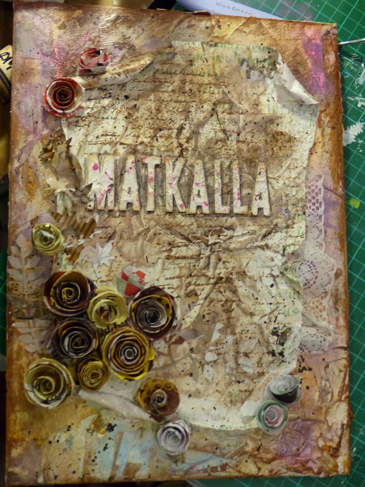 Sitten käytiin lounaalla ja taas palattiin sorvin ääreen. Nyt oli suuresti odotettu ja himoittu Finnabairin kurssi Overemotional-collage. Aivan upea kurssin aihe, toteutus ja se isnpiraatio. Anian tyyli opettaa on niin inspiroiva, kannustava ja sopivalla vauhdilla varustettu, että se 6 tuntia mitä kurssille oli varattu aikaa meni kuin siivillä. Jälkikäteen olemme puhuneet, että se tuntui oikeastaan 3 tunnin kurssilta. Itse olen todella tyytyväinen omaan valmiiseen työhän (esittelen sen myöhemmin, kun saan kunnon kuvat). Ei voi sanoin kuvata sitä kurssin antamaa antia!